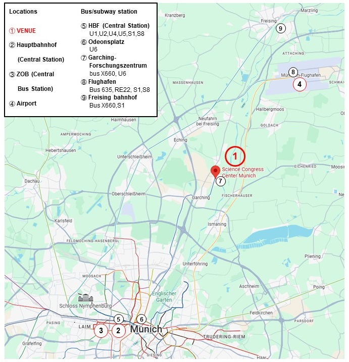 Munich is a well-connected city with efficient public transportation. The SCC Munich can be reached easily from various transport hubs: